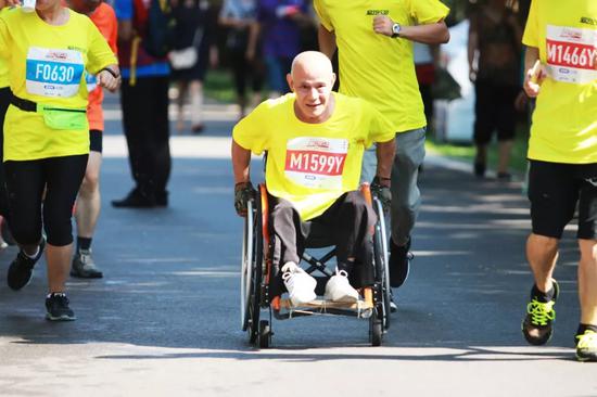 “我喜欢这样跟着爸爸一起跑步,很热闹。明年还想跟爸爸一起来,这样就可以有更多时间和爸爸在一起。以后,等爸爸跑不动了,我就推着他跑”