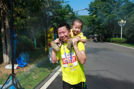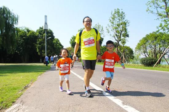 “这是陪伴孩子的第一场健康跑,希望以后能有更多的时间陪着他跑。其实孩子在陪我们,多过了我们陪他,他带给我们的快乐,也多过了我们给他的”