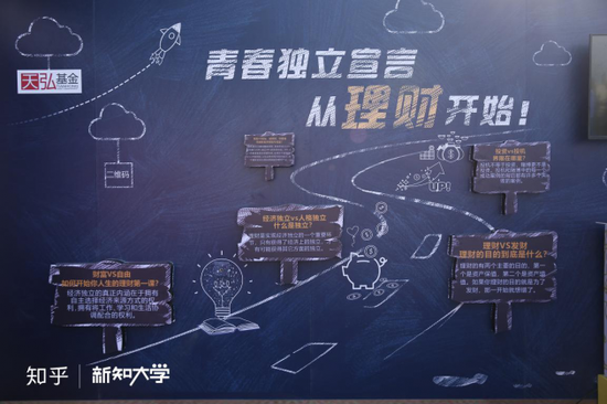 在2018校园行活动中,天弘基金首次与中文互联网最大知识平台知乎携手,包括合力打造“新知大学”独立班教室,通过“一句话独立墙”、“独立班任意门”、“财商教育手册展示墙”等互动形式,和大学生一起探讨独立的真谛;联合知乎优秀创作者推出《二十岁的经济独立主义》电子书,致力于成为新一代大学生的财商教育必读课本;在天弘基金校园行武汉站的活动现场,邀请知乎优秀创作者与一线金融研究者同台演讲,向在场的大学生分享经济独立三步走:“规划自己的规划力”、“认识自己的风险力”、“掌控自己的自控力”,与大学生进行经济、人格、心理多方面的交流互动。