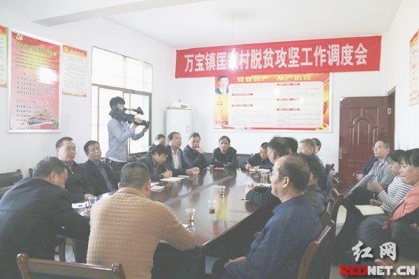 红网时刻10月26日讯(通讯员 陈新颖 刘玉楚)为确保圆满完成2017年脱贫目标,10月24日下午,万宝镇匡家村脱贫攻坚工作调度会在匡家村村级活动中心召开,娄底市供销社、娄底市气象局、娄星区组织部三家单位的负责人及各帮扶责任人,娄星区万宝镇相关人员参加调度会。