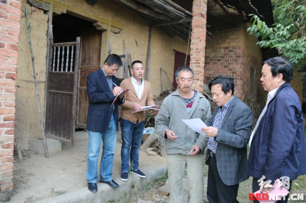娄底市供销社党组书记、理事会主任龚卫民(左一)党组副书记、监事会主任谭平贵(右二)带队走访贫困户。