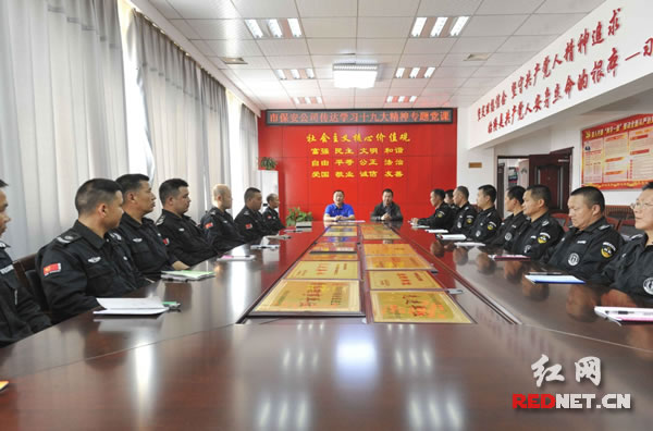 市保安公司组织机关党员学习贯彻党的十九大精神。