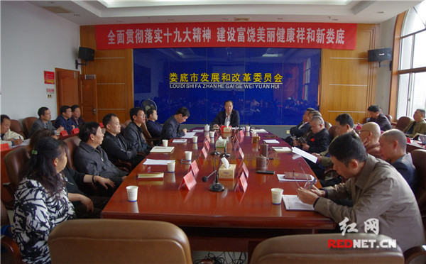 红网时刻10月31日讯(通讯员 颜绍平 廖永华)10月30日,娄底市发改委组织开展了“全面贯彻落实十九大精神 建设美丽幸福健康祥和新娄底”集中学习党的十九大精神活动,市发改委党组书记、主任杨维作了学习辅导讲课,党组副书记、副主任孙立平主持学习活动。
