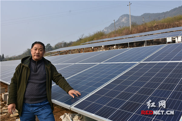 扶贫工作队队长邵德强介绍光伏发电扶贫项目。