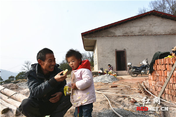 在郑丰组,扶贫人员深入贫困户家中交谈,了解贫困户主要收入情况,以及“不愁吃、不愁穿,义务教育、基本医疗和住房安全有保障”情况。“国家政策真的好,子女教育都是沉重负担,我哪有钱建房,要不是有国家补贴,我现在都还只能住在几间土砖屋里。”到异地搬迁户谢自良家里时,谢自良正悠然地带着孙子在屋前玩耍,谢自良是三级矽肺病人,靠挖煤含辛茹苦带大三个子女,培养了两个大学生一个中专生,今年年初在扶贫工作队的帮助下,申请到异地搬迁国家补贴12万余元建了新房。