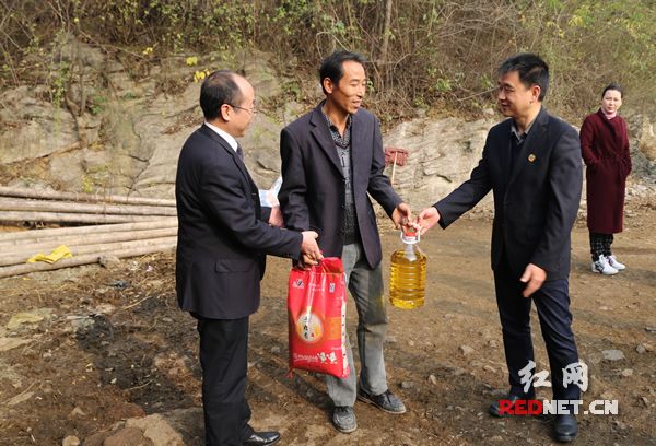 为贫困户送去粮油。