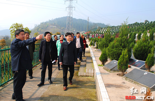 清明节期间,娄底市殡葬管理办公室相关领导督查文明祭扫情况。