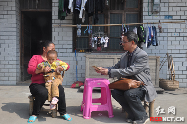慰问组一到村里就分头各自深入到自己结对帮扶的贫困对象家里进行慰问,娄底市政府派驻国有企业监事会主席李建生今天共走访了四户结对帮扶对象,每到一户他都详细询问他们生产、生活、子女上学和经济收入情况,耐心讲解扶贫政策、仔细填写扶贫手册,鼓励他们克服困难、树立信心,并为他们送上了慰问金,嘱咐他们买点春耕需要的种子、化肥什么的,用勤劳的双手创造出更加幸福美好的生活。“感谢李主席,什么事情都想着我,这些钱我们太需要了、太及时了,真是太感谢了!”贫困户罗忠佑虽不在家,妻子和不满三岁的儿子也收到了温暖和祝福。