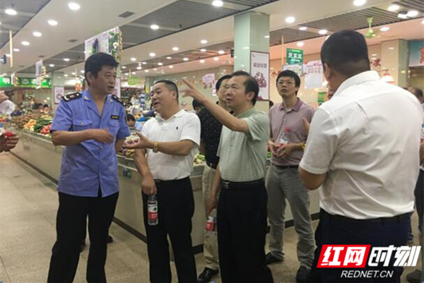 学习组在闵行区天元农贸市场实地学习监管工作经验。