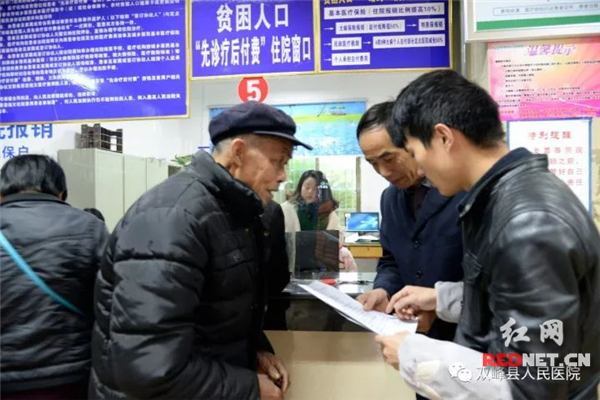 红网时刻11月21日讯(通讯员 李烨)“感谢党的好政策!感谢医院的‘一站式结算窗口’,健康扶贫真是扶到了我们心窝里了……”11月21日上午,来自双峰县永丰镇月龙村的贫困户贺永连为其儿子贺跃华办理出院手续,在双峰县人民医院医保窗口工作人员的引导下,他足不出户就领到了此次儿子出院后的系列补助2000多元。