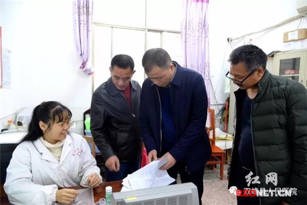 双峰县副县长李兴魁在检查“贫困人口一站式结算”窗口。