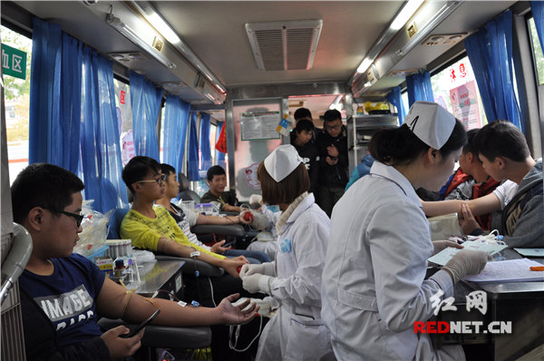 娄底职业技术学院组织大学生开展无偿献血活动。