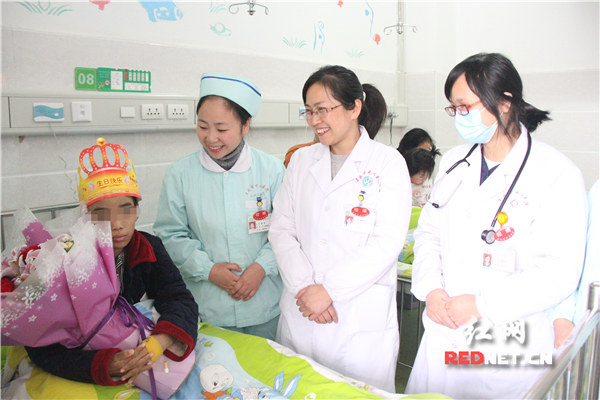 红网时刻1月9日讯(通讯员 刘紫寒)2017年12月22日,是杨杨10岁的生日。然而对来自娄星区蛇形山镇古塘村的杨杨来说,这次生日却有些不同寻常。推着蛋糕走向他的不只是爸爸妈妈,还有身穿白衣的医生和护士。鲜艳的皇冠、缤纷的蜡烛、香甜的蛋糕,照亮了这个曾经调皮可爱、被村里人戏称为“小孙悟空”的孩子黯淡的脸蛋。