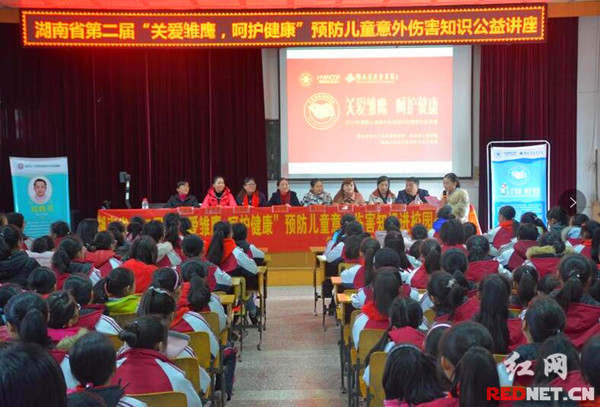 湖南省第二届“关爱雏鹰·呵护健康”预防儿童意外伤害讲座娄底二小现场。