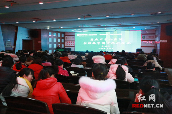 红网时刻娄底1月30日讯(通讯员 刘紫寒)1月26日,娄底市中心医院护理品管圈成果汇报会在该院门诊六楼会议厅举办。市卫计委副主任王健云、市中心医院副院长谭华清出席以及全院医务工作者共两百余人参加会议。