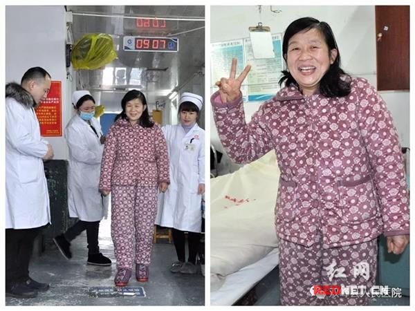术后第三天下床走路了,曹女士很高兴。