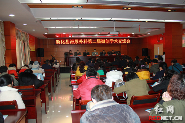 红网时刻娄底2月12日讯(通讯员 黎德华 周琼 邹姣)2月8日,新化县第二届泌尿外科微创内镜学术交流会在新化县人民医院举行。湖南省医学会泌尿外科专业委员会主任委员、湘雅医院泌尿外科主任齐琳,湖南省泌尿外科专业委员会副主任委员、湘雅医院泌尿外科副主任张向阳,娄底市医学会泌尿外科专业委员会副主任委员刘晓冰,县卫计局、新化县人民医院相关负责人以及张家界、常德、石门、涟源、冷水江等兄弟单位的专家教授参加会议。