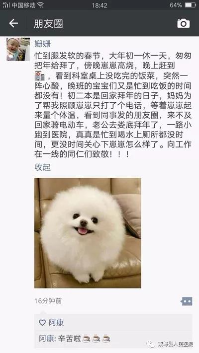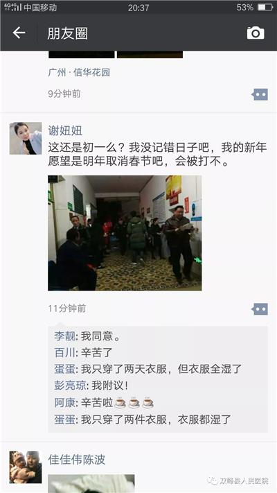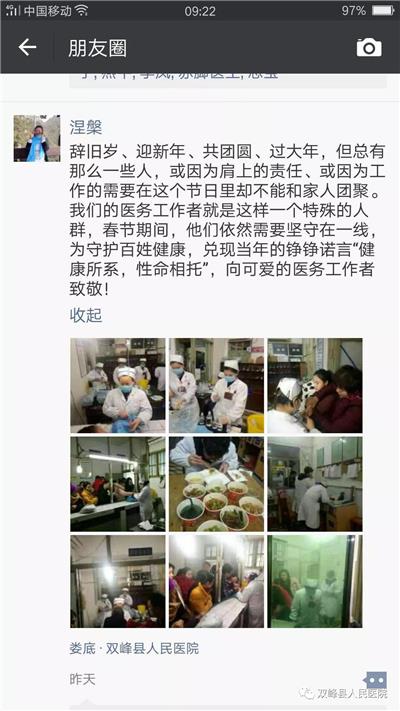 下面让我们通过图片及微信截屏来感受一下双峰县人民医院医护人员的春节时光。