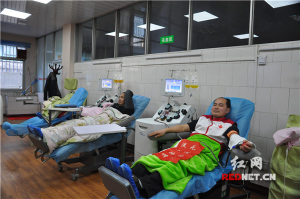 春节期间,娄底市民踊跃献血。