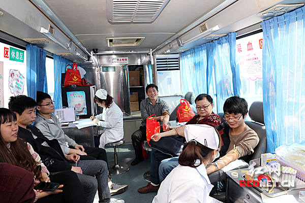市康复医院的职工们正在排队进行无偿献血。