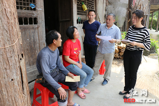 当天,市中医医院一行人顾不及舟车劳顿,下车后便径直去到各自的帮扶对象家进行结对帮扶,仔细了解情况并送上慰问金。院长陈福如步行2公里,走到第一个帮扶对象张人生家中,张人生今年70多岁,脖子上长了一个大肉瘤,老伴身体较差,大儿子服刑,小儿子在外务工,家里养了6头猪,10多只鸡和鸭,老俩口至今仍住在1948年建成的木板危房中。陈福如了解情况后,送上慰问金,并关心地邀请张老到市中医医院去看下肉瘤,表示会帮忙想办法减免费用,还会帮张老联系鸡鸭和猪的销路。随后,陈福如又陆续去到其余3户帮扶对象中,摸清情况并送上脱贫“良方”。
