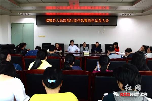 双峰县人民医院召开行业作风整治年动员大会。