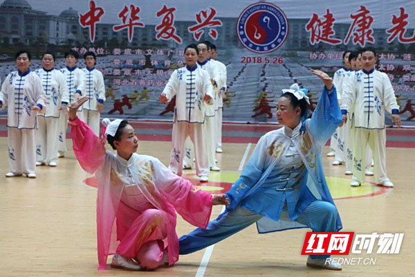 娄底市太极拳协会康复医院辅导站的会员们正在表演。