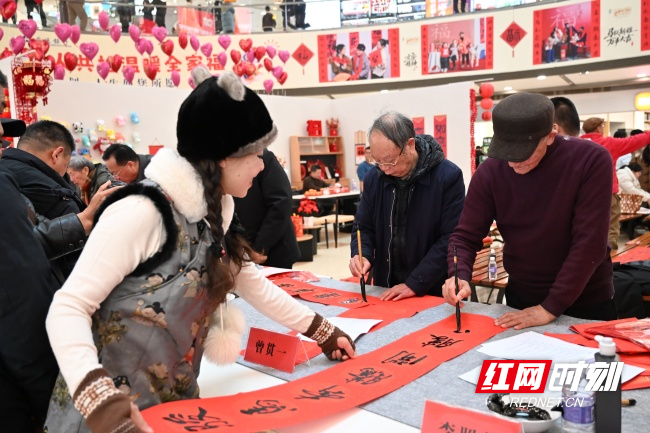 红网时刻新闻2月10日讯(记者 罗子依 实习生 曹嘉琪)2月9日,娄底市万豪城市广场内人头攒动,墨香四溢。娄底市2026“强基工程”——文艺助力基层精神文明建设行动暨“新时代新春联‘百千万’”艺术工程在此正式启动,一系列覆盖城乡、形式多样的新春文艺惠民活动拉开帷幕。